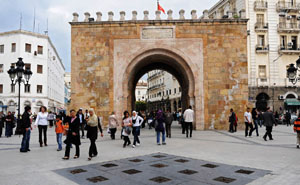 轉(zhuǎn)眼一個多小時過去了,老城似乎越逛越看不到頭兒,這個集住家、手工業(yè)和商業(yè)功能于一身,占地270英畝由曲折交錯的街衢、拱狀通道、胡同和死巷組成的區(qū)域讓我感覺進去了就很難出來。終于我們走出街巷,眼前一片開闊,一個漂亮的拱門以及拱門另一側(cè)寬闊的街道似乎告訴我們這里就是老城的終點,果然,雖然麥地那老城的舊城墻不復存在,但還有近10座城門保存良好,眼前這座便是新城與舊城相接的海門。過了海門就是法國殖民者修建的新城了。
