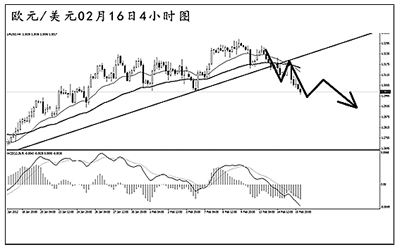 歐元兌美元跌破了上升趨勢線之后加速下挫,4小時(shí)圖進(jìn)入到空頭動能充盈的階段。目前匯價(jià)正在考驗(yàn)道氏低點(diǎn)的支撐1.3025,只有跌破方可結(jié)束階段性的上漲。短線主客觀趨勢均向下,后市等待回調(diào)出現(xiàn)后方可考慮做空歐元,但最好等待道氏點(diǎn)支撐被跌破后再入場。