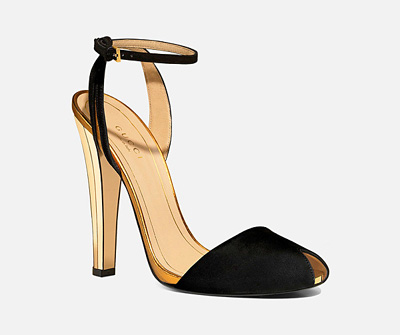 Gucci(古琦)2012春夏系列鞋履,跳脫設(shè)計(jì)的條條框框,從每一雙鞋的細(xì)節(jié)處自然流露出設(shè)計(jì)師對于時尚的敏銳感知。黑色與金色相結(jié)合,采用金屬的鞋跟,不僅彰顯質(zhì)感,而且華麗高雅,鏈條元素的加入,也顯得尤為優(yōu)雅、摩登和復(fù)古。魚嘴鞋款則使用了更具觸感的翻毛皮材質(zhì),依然是鏈條的點(diǎn)綴,卻將原本簡單的基本鞋款顯得個性十足。