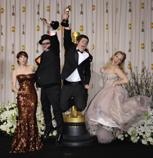 2月26日晚在洛杉磯好萊塢高地中心舉辦的第84屆奧斯卡獎頒獎典禮上,前期在眾多評獎活動中所向披靡的法國黑白默片《藝術家》不負眾望,一舉摘得最佳影片、最佳男主角、最佳導演、最佳服裝設計和最佳電影配樂5項大獎,成為最大贏家。
