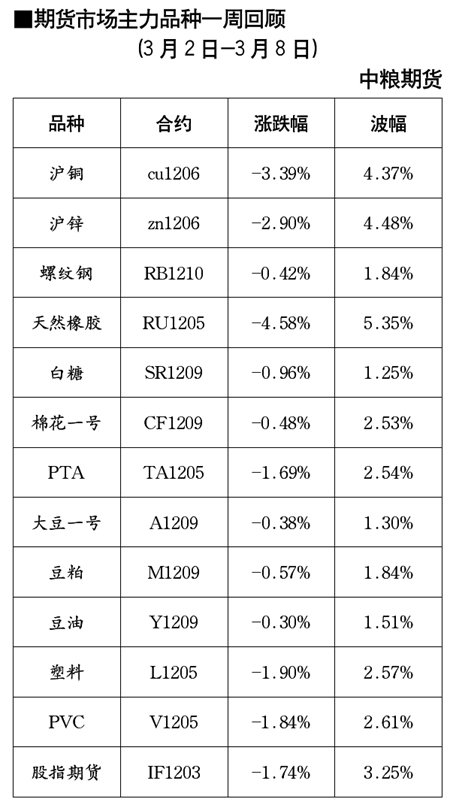 期貨市場(chǎng)主力品種一周回顧[3月2日-3月8日]