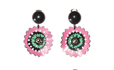 大膽而出人意料是Marni 2012夏季系列首飾的一大特色。設(shè)計(jì)師利用回收塑料和聚乙烯樹脂組合而成華麗花狀飾物,穿孔樹脂呈現(xiàn)桑加羅蕾絲般的效果。耳環(huán)上的吊墜由幾何形狀的樹脂制成。以黑色為基底色,加以適當(dāng)?shù)臒晒馍c(diǎn)綴,讓每件首飾都足夠靚眼。