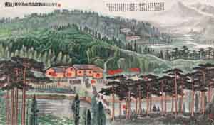 自上世紀50年代開始,隨著中國政治、社會各方面涌現(xiàn)出一種對革命圣地的崇拜熱情,與革命歷史相關(guān)的韶山、井岡山、延安等地,地位不斷提升。1960年傅抱石的《毛澤東同志故居》《韶山八景》參加在北京舉辦的全國美術(shù)展,最早將對革命圣地的描繪脫離寫生層面,進入主題性創(chuàng)作,“革命圣地山水題材”就此開始形成,這種新的山水畫類型在上個世紀60年代中期得到空前發(fā)展,成為與“毛澤東詩意山水”并行的兩大國畫題材。在此類型作品中,“韶山”是畫家描繪最多的,幾乎當(dāng)時所有山水畫家都曾涉足。