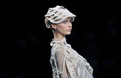 19日,在日本東京舉行的梅賽德斯-奔馳時(shí)裝周上,模特在展示日本設(shè)計(jì)師廣川玉枝(Tamae Hirokawa)的作品。2012/13秋冬時(shí)裝周從3月18日持續(xù)至3月24日。