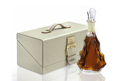 Mansau設(shè)計(jì)的Baccarat水晶酒瓶盛裝,以皮革蕾絲封瓶,包覆24K的金箔,搭配手工義大利皮制展示盒,限量發(fā)行950瓶。