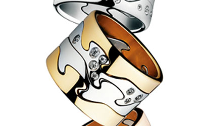 Fusion系列以指環(huán)開始。幾個精美別致的小金環(huán)巧妙靈動相交相融,契合成獨特的設計。這前所未有、巧奪天工的設計融合出搭配的無盡可能,情定無限真愛。無瑕璀燦的美鉆和層層耀目的黃金幻化為情侶間的專屬印記,拼湊著情路上的點滴熾熱,協(xié)奏出醉人的浪漫故事,同時亦展現(xiàn)與眾不同的個人風格。