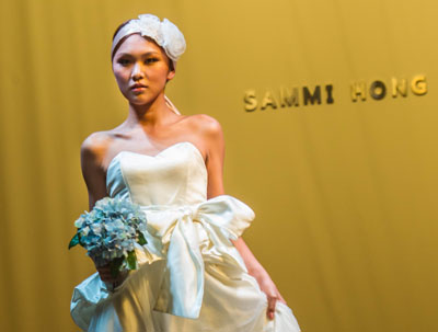 “Sammi Hong2013春夏婚紗系列”發(fā)布會日前在上海東華大學(xué)舉行,展示了由東華大學(xué)在校學(xué)生設(shè)計制作的60件婚紗禮服,作品風(fēng)格溫婉而細(xì)膩,顯示了學(xué)生們的才華與創(chuàng)意。圖為模特在展示婚紗禮服作品。