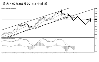 美元兌瑞郎的高位下行也跌破了通道下沿和均線系統(tǒng)的雙重支撐,4小時(shí)圖的MACD顯示空頭動能充盈,匯價(jià)即將挑戰(zhàn)道氏低點(diǎn)支撐0.9530,能否跌破成為后市繼續(xù)下跌的關(guān)鍵。小時(shí)圖顯示最近的強(qiáng)動能交替節(jié)奏頻繁,但整體的下行趨勢保持完好,預(yù)計(jì)匯價(jià)小幅上調(diào)之后將繼續(xù)以回落走勢為主。