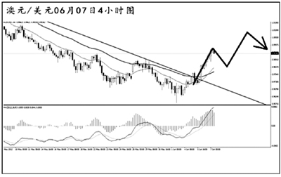 澳元兌美元小幅刺破了日線圖前方低點(diǎn)支撐0.9660之后持續(xù)反彈,力度強(qiáng)勁,此前持續(xù)的MACD底背離信號發(fā)揮了作用,且匯價(jià)已經(jīng)將下降趨勢線和4小時(shí)圖的道氏高點(diǎn)阻力0.9895升破,階段性的下跌告一段落。短線澳元的上漲斜率陡峭,匯價(jià)將首先挑戰(zhàn)日線圖55均線的壓制位1.0095。