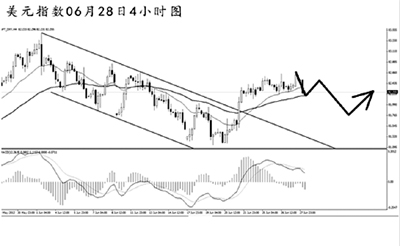 中國(guó)銀行北京市分行資金交易員施維判斷,美元指數(shù)6月以來(lái)的下降通道已經(jīng)在上周四被向上突破,并且沒(méi)有出現(xiàn)對(duì)上邊緣的回踩。如果歐盟峰會(huì)結(jié)果不佳,那么將會(huì)對(duì)這次突破形成一個(gè)確認(rèn),美元指數(shù)有望結(jié)束此輪回調(diào)。上方的阻力來(lái)自6月1日高點(diǎn)83.50。