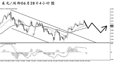 美元兌瑞郎此前的上沖并未能直接挑戰(zhàn)前方高點0.9770一線,由于短線上漲動能持續(xù)減弱,匯價的漲勢也逐步放緩。除非再度創(chuàng)出新高,否則目前已不適合繼續(xù)做多。下方面臨的支撐為4小時圖均線系統(tǒng)的依托0.9570,跌破方可展開更為明顯的下調(diào)。