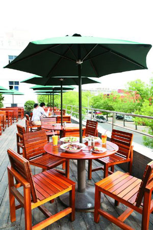 bar與嘈雜的城市隔離開來,有點城市凈土的意思。最讓人迷戀的是餐廳有點滄桑之感的木質(zhì)地板、還有永不停歇的好音樂,餐廳的四周都置有音響,無論坐在哪個位子都可以如老電影里的俏皮姑娘、公子哥一般,一邊用餐看風(fēng)景、一邊用腳打節(jié)拍,把木地板弄得吱吱響。