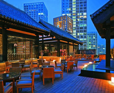 秀室外餐廳由五個主題餐廳、酒吧及設(shè)計別致的走道組合而成,灰色屋瓦、深棕木柱,各處都是充滿古韻的宋代建筑風(fēng)格;蛟S是環(huán)境設(shè)計得太用心,來秀用餐總有點不小心走入了某段舊時光的錯覺,這邊還是幾進(jìn)的院落、那邊就是國貿(mào)的高樓大廈了。