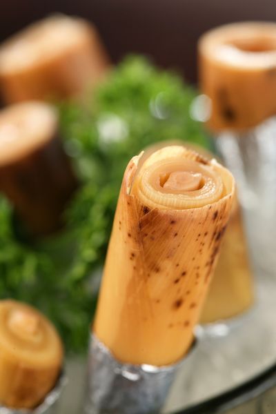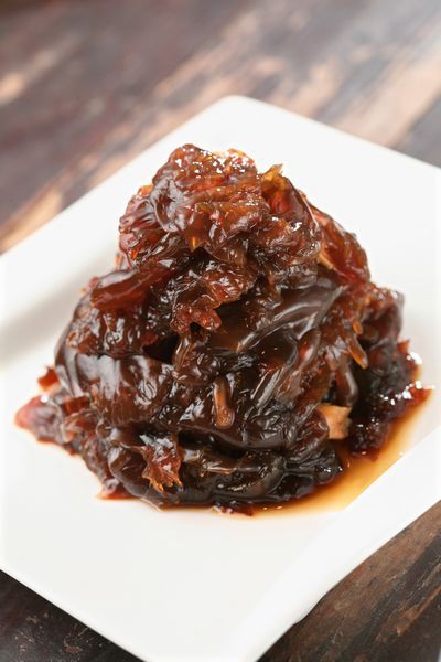 如果是喜歡魚蝦鮮腥那一口的人,滿可以大著膽子嘗試一下紹興蝦油雞。雞肉選用走地三黃雞,在胡椒、姜水和凈水里面三浸三泡,最后封油,油潤(rùn)的雞皮和嫩滑的雞肉入口鮮美,但是配這個(gè)酒,用的一定要是小蝦米發(fā)酵了30天沁出來的蝦油,雷司令的熱帶水果和蜂蜜味與蝦油重重的咸蝦味互相呼應(yīng),而甜潤(rùn)的口感讓雞肉柔嫩的質(zhì)地越發(fā)突出。
