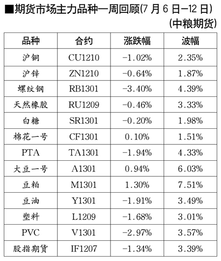 期貨市場(chǎng)主力品種一周回顧[7月6日-12日]