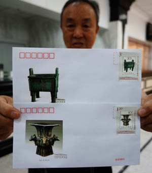 為迎接7月9日中國(guó)國(guó)家博物館建館100周年紀(jì)念日,中國(guó)郵政正式發(fā)行“國(guó)家博物館”票中票特種郵票一套2枚,名為:館藏文物—尊、館藏文物—鼎;面值分別為:1.20元、3元。