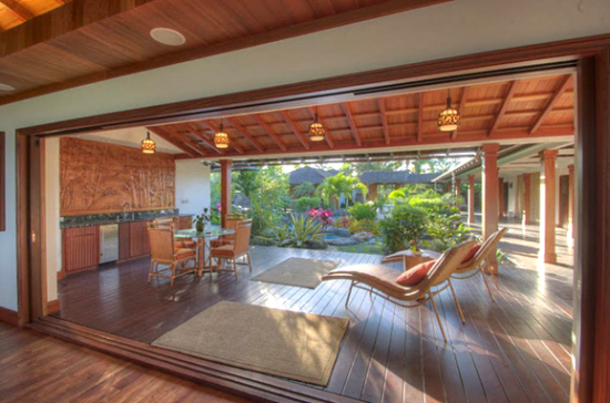 Bay)。它擁有五間帶有獨(dú)立浴室的臥室、一個健身室、一間放映室,奢華至極的廚房引向可供12人就餐的餐室。兩間臥室實際上設(shè)在迎賓館中。建筑周邊設(shè)施還包括兩個涼臺和一個中央庭院,庭院正對著一個由吧臺和休息區(qū)間隔而成的池畔涼亭,瀉湖風(fēng)格的游泳池中有瀑布和島嶼溫泉。根據(jù)該別墅網(wǎng)站,這座種植園莊園一直保留著其原有的名字,用“海島種植園風(fēng)格”裝修,用天然石材的馬賽克、彩色玻璃和非洲紅木雕刻裝飾。