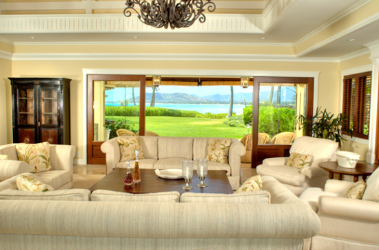 這座5,000平方英尺的海邊別墅位于瓦胡島(Oahu)凱盧阿鎮(zhèn)(Kailua),坐落在豪華的城堡角(Castle