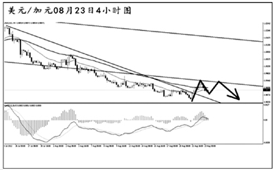 美元兌加元中線的跌勢(shì)遭遇一定的挑戰(zhàn),短線匯價(jià)發(fā)力上行,但并未能回到此前被跌破的下降通道內(nèi)部。美元兌加元的強(qiáng)動(dòng)能交替節(jié)奏較為頻繁,雖然匯價(jià)將道氏高點(diǎn)阻力0.9900一線刺破,但并未能持續(xù)上行,后市仍有繼續(xù)下行的風(fēng)險(xiǎn)。目前需以謹(jǐn)慎看空為主思路。