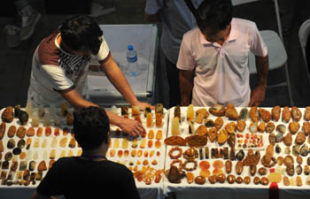 8月13日至14日,最新一期黃龍玉公盤交易在龍陵縣舉行。記者實(shí)地走訪發(fā)現(xiàn),隨著大量游資撤離,曾經(jīng)炙手可熱的黃龍玉正遭遇市場(chǎng)遇冷的考驗(yàn)。“中低端產(chǎn)品價(jià)格降了三成左右,銷售量也少了四成,全部家當(dāng)就換來了這堆石頭,真是進(jìn)退兩難!饼埩昕h黃龍玉交易市場(chǎng)的玉石商人林新喜無奈地說。