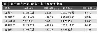 Wind資訊統(tǒng)計(jì)數(shù)據(jù)顯示,截至2012年8月25日,滬深兩市已有101家房地產(chǎn)上市公司公布了半年報(bào),總體來看,上半年房企銷售普遍飄紅,但利潤增幅明顯落后于銷售增幅“招保萬金”四大行業(yè)巨頭上半年?duì)I業(yè)收入總額超過674億元,相比去年的484億元大幅增長近40%;但凈利潤只比去年同期增長不足2億元,為79.59億元。