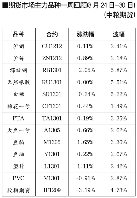· 期貨市場主力品種一周回顧[8月17日-23日] 2012-08-24