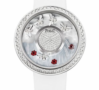 Perignon,竟然還能飄出細(xì)密的泡沫,味道平和,很好入口,一片緋紅很快從杯子移到臉龐上。這個時節(jié),你就該戴上鑲有共重2克拉的188顆美鉆的“夏”,讓我欣賞盤上小蜜蜂在飛旋。蔚藍(lán)跟乳白的珠貝背景,表現(xiàn)著朗日高懸?窗,有一只小蜜蜂嘴饞了,飛到大紅花與麥穗?yún)仓。夏天有麥穗?幻想是沒有界限的。庭院對面的房間開了,也許出門的是這里的老住客毛姆呢。