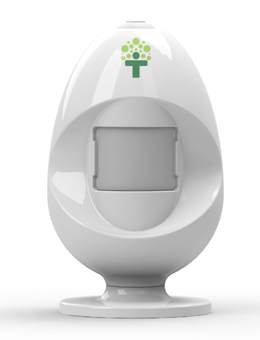 能量蛋為無(wú)線裝置,白色,外形呈圓形,有底座,像個(gè)小小的香薰燈,一只手可以輕松拿起。