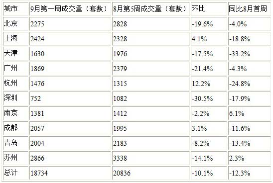 被業(yè)內(nèi)寄予厚望的傳統(tǒng)樓市銷售旺季“金九銀十”上周在平淡中拉開序幕。根據(jù)鏈家地產(chǎn)市場(chǎng)研究部統(tǒng)計(jì),包括北上廣深四個(gè)一線城市在內(nèi)的十個(gè)重點(diǎn)城市上周(9月3日至9日)總成交量為18734套,環(huán)比8月最后一周減少了10.1%,較8月第一周下降了12.3%。大部分城市基本都出現(xiàn)了不同程度的下滑。“去年價(jià)格是真降,而今年則更多是開發(fā)商的"作秀"!庇袠I(yè)內(nèi)人士告訴記者,房?jī)r(jià)一定程度的回升及8月下旬市場(chǎng)供應(yīng)不足是9月初樓市成交開局不利的主要原因。