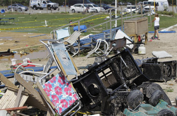 2012年9月8日,一場龍卷風當天襲擊了紐約市沿海地區(qū),在美國紐約皇后區(qū)的一個沖浪俱樂部,受災(zāi)地區(qū)一片狼藉。新華社/美聯(lián) |
