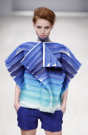 10月14日,在烏克蘭基輔的2013春夏時裝周上,模特在展示烏克蘭設計師Victoria Panyukova的作品。