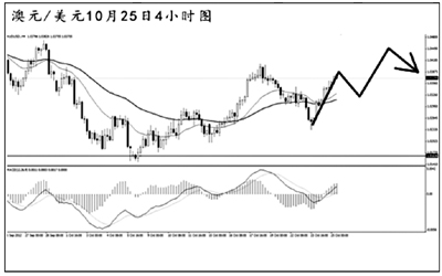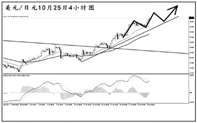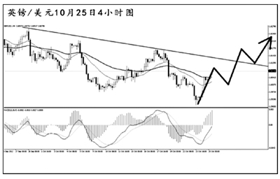 美元兌日元在突破日線圖下降趨勢線之后平穩(wěn)上沖,逐步向道氏高點阻力80.60挺進。小時圖和日線圖的MACD均處于多頭動能充盈階段,美元兌日元的上漲仍將持續(xù)。從現(xiàn)在的情況來看,日元升值的勢頭遭到了一定程度的遏制,若匯價成功突破80.60的阻力,后市還有進一步上沖的動力。
