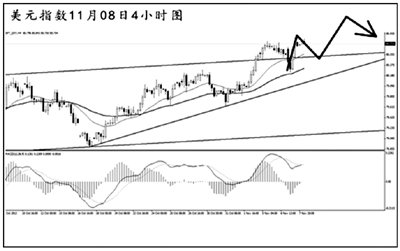 美元指數(shù)此波上行突破了4小時(shí)圖震蕩通道的上沿,雖然短線價(jià)格面臨一定的反復(fù),但目前仍然是多頭動(dòng)能占優(yōu)。從日線圖上看,此次盤整形成旗形中繼的概率有所降低,MACD顯示多頭動(dòng)能充盈。若本周美元指數(shù)收盤不重新跌回到80.50下方,則后市仍將以繼續(xù)上沖為主。上方的下一道強(qiáng)阻力在81.60一線。