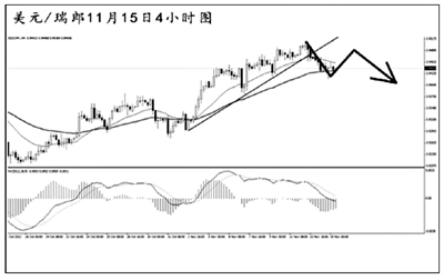 美元兌瑞郎在突破0.9435的日線圖道氏高點阻力之后未能延續(xù)漲勢,短線匯價下行回落,重新向此位置發(fā)起回探。小時圖持續(xù)發(fā)生了MACD的頂背離信號,多頭動能明顯減弱,目前匯價已經(jīng)將4小時圖的均線系統(tǒng)小幅跌破。預計短線再度大幅沖高的概率較小,后市將以逐步回落的節(jié)奏為主。