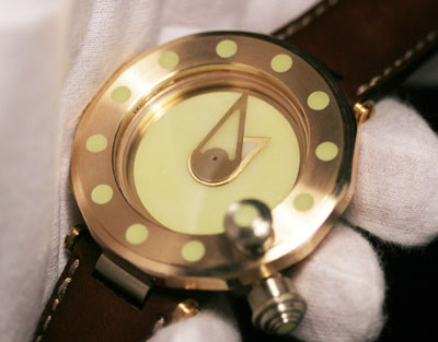 獨(dú)立制表師Martin Pauli日前發(fā)布了Magnus Junior青銅潛水表,該表款由鋁銅合金制成,鏡面為藍(lán)寶石水晶,真皮表帶,機(jī)械自動上鏈機(jī)芯,含有41顆寶石,振幅為18000 A/小時(shí),動力儲存48小時(shí),直徑48.00毫米。