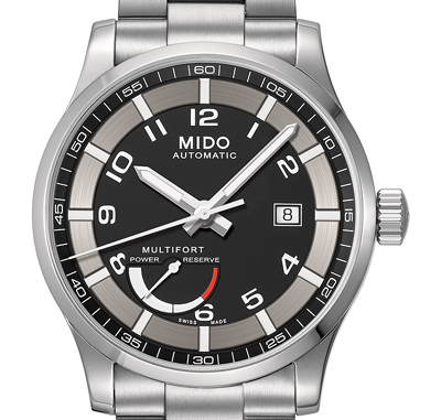舵手動(dòng)力儲(chǔ)存系列配以不銹鋼表帶。同時(shí)美度也推出了真皮表帶的系列表款可供選擇。