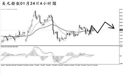 美元指數(shù)短線小幅反彈,但整體仍然維持盤整的態(tài)勢。4小時(shí)圖上看,均線系統(tǒng)被反復(fù)穿越,由于價(jià)格升破了80.05的一浪低點(diǎn),五浪下跌的浪形遭到破壞。從美元指數(shù)的運(yùn)行節(jié)奏看,需重點(diǎn)關(guān)注下方79.55的支撐,只要不跌破此位置,后市仍有走高的欲望。
