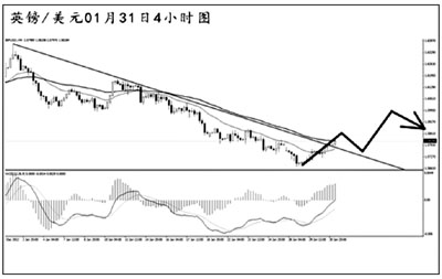 英鎊兌美元暫時放緩了下跌的腳步,日線圖低位收出曙光初現(xiàn)的K線組合之后,短線匯價反彈上行。小時圖包含底背離點的下降趨勢線已被升破,英鎊仍有進一步上沖的動力。目前匯價正在挑戰(zhàn)4小時圖均線系統(tǒng)的阻力,位置在1.5820一線,成功上破此點位成為后市英鎊持續(xù)上行的關鍵。