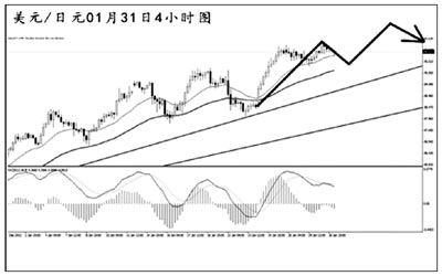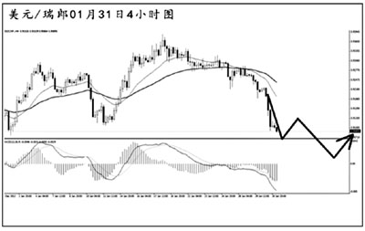 美元兌瑞郎在經(jīng)過了一周多的震蕩下行之后,短線空頭突然發(fā)力,本周中日線圖連續(xù)兩天收出實體大陰線,顯示出強勁的下跌勢頭。目前匯價已經(jīng)接近了前方低點0.9075的支撐,若突破,中線跌勢將進一步確立。由于短線下行斜率陡峭,匯價面臨一定的上調壓力,但整體看跌的思路不變。