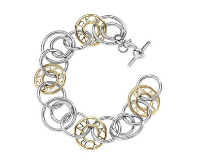 links系列手鏈趣味十足,大大小小的飾品相互交織,共同組成DKNY標志性LOGO。這些飾品隨意組合,形成自然的層次感與多維的兩種色調(diào):鍍金色和銀色,閃閃發(fā)光,極具吸引力。