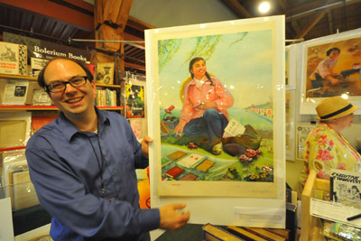 2月16日,在美國(guó)舊金山舉行的第46屆加利福尼亞國(guó)際古舊書展上,參展商亞歷山大·埃金展示中國(guó)上世紀(jì)70年代的宣傳畫《田間文化站》。
