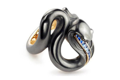 Faberge設(shè)計的靈蛇珠寶曾經(jīng)帶給過我們無限的驚喜和美好回憶。而“蛇”圖案本身也是一個在珠寶領(lǐng)域中被反復(fù)使用和重復(fù)出現(xiàn)的設(shè)計主題。這次Faberge帶來的充滿異國情調(diào)的全新靈蛇系列珠寶,其創(chuàng)作靈感原是來自于俄國民間的一個童話故事,故事講述的是一位姑娘愛上并且嫁給了一個可以變成人形的靈蛇童話。而這個充滿戲劇性的高級雕刻珠寶,是由黃金,白金和純銀制成,在靈蛇蜿蜒的身軀上更是附上了藍寶石的華麗鑲嵌,并且畫龍點睛的加入了蛋白石的元素,讓整個珠寶呈現(xiàn)出充滿靈動感的現(xiàn)代氣息。