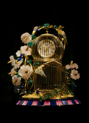 香港蘇富比藝術(shù)空間當(dāng)日預(yù)先展出多件展品,其中百達(dá)翡麗的“金貝與珍珠”和“喜鵲聚寶鳥巢”兩件座枱鐘,卡地亞“火鶴與蓮花”機(jī)械座枱鐘最受矚目。