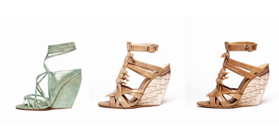 Donna Karan(唐娜?凱倫)塑造的女性形象一直優(yōu)雅迷人,女人味十足。2013春夏的鞋履系列采用了玻璃和海水的透明色調(diào),柔軟舒適的麂皮涼鞋,精巧的雕花樹(shù)脂高跟鞋,以及時(shí)尚的腳踝綁帶淺口鞋都在鞋跟做了別致的透明處理,讓你看起來(lái)性感迷人。與本季女裝系列的概念如出一轍,延續(xù)了永恒經(jīng)典的風(fēng)格,體現(xiàn)沙灘、天空、海浪、巖石等充滿活力的自然元素。