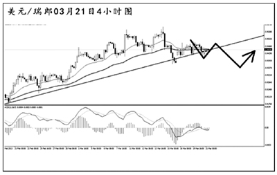 美元兌瑞郎小幅刺破了4小時圖的上升趨勢線,現(xiàn)正在考驗(yàn)此趨勢線的支撐強(qiáng)度。日線圖上看,由于匯價(jià)此前并沒有升破0.9510的阻力,上行空間未被打開,也在一定程度上制約了匯價(jià)的進(jìn)一步上攻。短線匯價(jià)面臨選擇,如果重新回到0.9510上方才有機(jī)會繼續(xù)做多,否則跌破趨勢線后則有很大的下調(diào)風(fēng)險(xiǎn)。