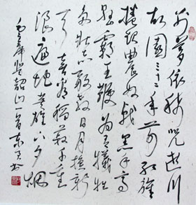 何東君為新華社原副社長,曾先后工作于甘肅、內(nèi)蒙古、四川,西部的風(fēng)情鑄造了他干練豪放的性格,為其書法的審美取向融入了心靈的契合。他于書法的切入,從一開始就把視角觸到了善于抒情達(dá)意的草書。他的作品飄逸瀟灑,大氣磅礴。近年來,他加強(qiáng)臨帖,研習(xí)行楷,使草書的線條和結(jié)構(gòu)更具質(zhì)感和美感,同時更加注重將國學(xué)修養(yǎng)和人格精神在書法作品中的再現(xiàn)。