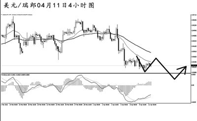 美元兌瑞郎未能創(chuàng)出日線圖新高,短線匯價持續(xù)下落,將大級別均線系統(tǒng)的依托位跌破。4小時圖上看,由于匯價運行到了0.9350下方,后市繼續(xù)下行的風(fēng)險加大。盡管短線的次級趨勢調(diào)整不佳,但由于下跌空間廣闊,預(yù)計匯價將進一步走弱,理想目標(biāo)在0.9050附近。