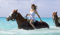 照片中,珍妮弗或是穿著婚紗體驗懸崖跳傘,或是坐著狗拉雪橇,或是手拿一杯葡萄酒面對埃菲爾鐵塔,或是面對中國麗江的水車沉思,甚至腳穿球鞋、在NBA球場上定點投籃……
