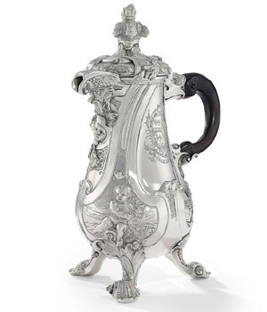 這款洛可可式標(biāo)志性作品由英國18世紀(jì)最偉大的御用銀匠保羅·德拉米熱制作。據(jù)市場預(yù)計(jì),該作品是拍賣史上同類作品中最為貴重的英國銀器制品。2010年,曾有一把18世紀(jì)銀質(zhì)葡萄酒壺以250萬英鎊的高價(jià)成交。
