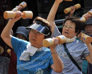 “我耳朵不好使,眼睛也看不清,渾身是病,”87歲的日本老人鎮(zhèn)元悅子(音譯)說(shuō),“但我的精神仍然年輕!